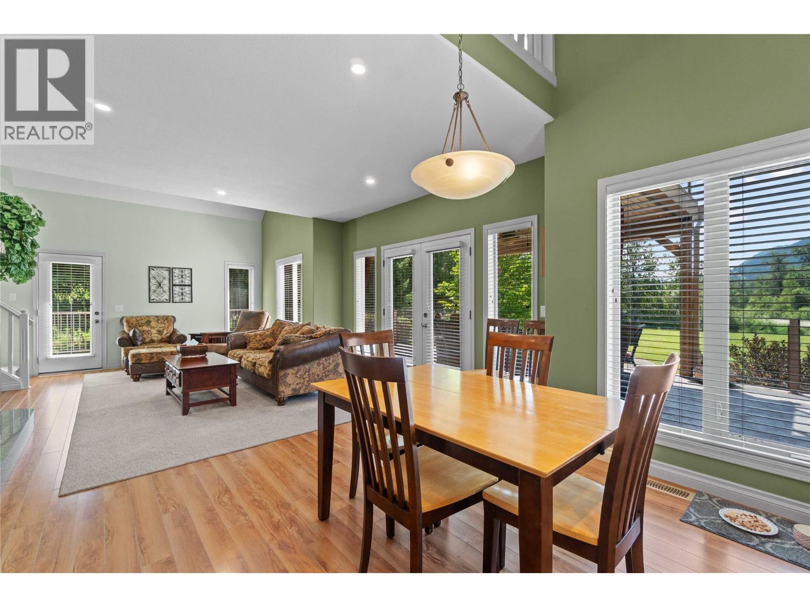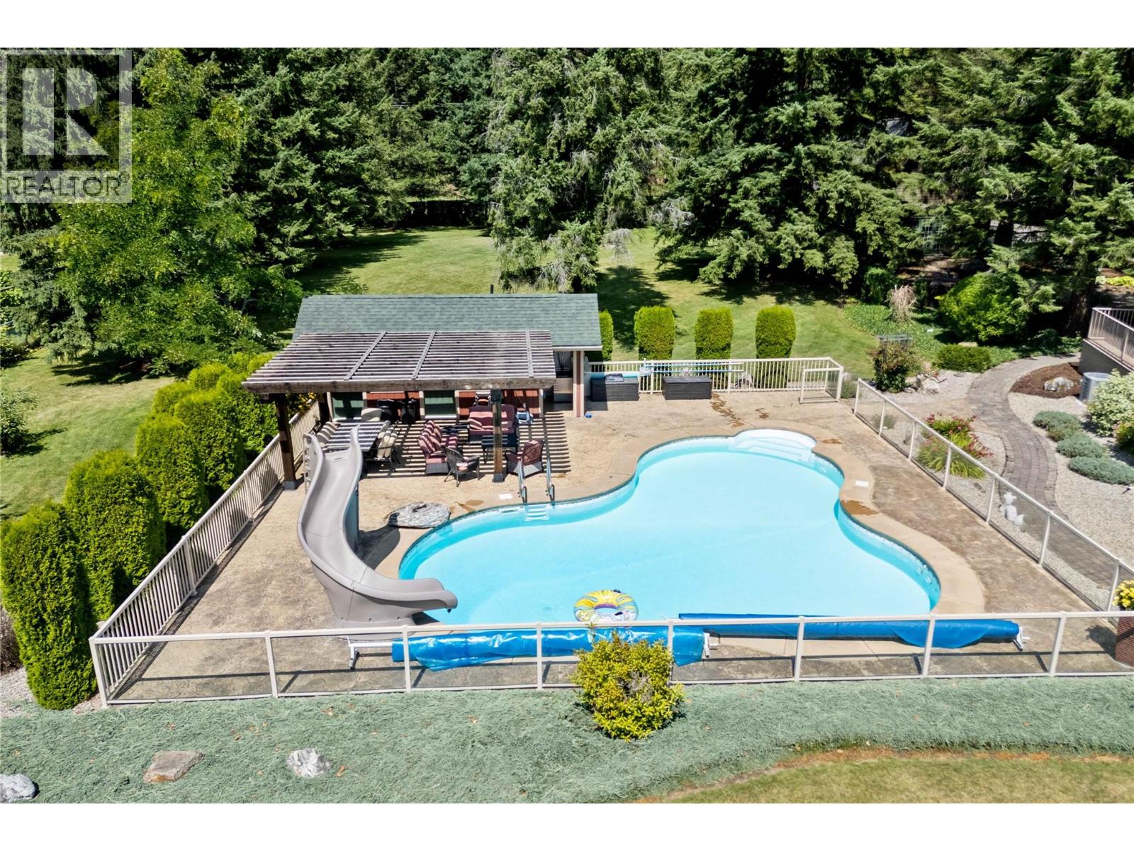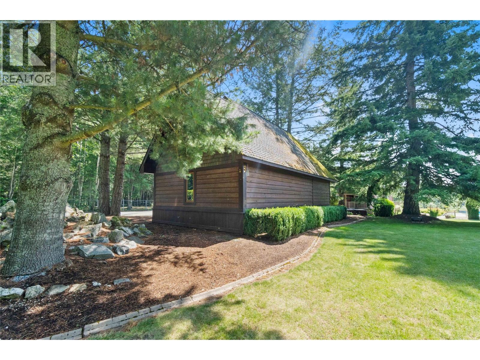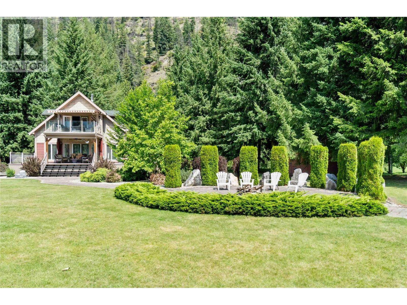 A once-in-a-lifetime turnkey opportunity offering unmatched privacy and recreation—all within town limits. This gated 4-bedroom, 3-bath chalet-style home sits on a beautifully landscaped property with direct river access to Shuswap Lake. Enjoy every outdoor activity from your doorstep—boating, fishing, swimming, ATVing, snowmobiling, walking, and cycling—with a marina and restaurant just down the road. The home features a wraparound concrete deck with glass railing, propane-plumbed BBQ, and both upper and lower-level fire tables. A paving stone patio surrounds a cozy wood-burning fire pit. The detached garage/workshop provides secure indoor parking, while the extensive paved areas offer ample space for vehicles, trailers, and the 30-amp serviced RV site. Relax in the in-ground pool with poolside bar, change room, bathroom, mechanical room, and a hot tub. The grounds are a true showpiece—extensively irrigated and beautifully landscaped with fruit and native trees, plus two matching sheds for additional storage. An incredible opportunity to own a private retreat with all the comforts of in-town living. Call today to book your private tour. (id:4069)